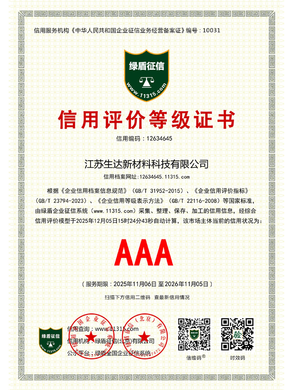 信用評價等級證書